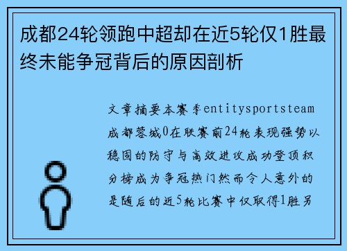 本文将以杨明洋妻子在韩国观战,见证成都亚冠历史上首个客场积分的骄傲时刻为中心,详细阐述这一具有重要意义的时刻。通过四个方面的分析,本文将全面探讨这一事件的历史背景、杨明洋妻子亲历的心路历程、她对这一时刻的情感寄托,以及这一时刻对成都球队和杨明洋个人职业生涯的影响。最终,文章将对这一事件进行总结归纳,揭示其背后更深层次的象征意义。本文不仅是对一场比赛的回顾,更是对人物、情感和历史的深刻解读。...